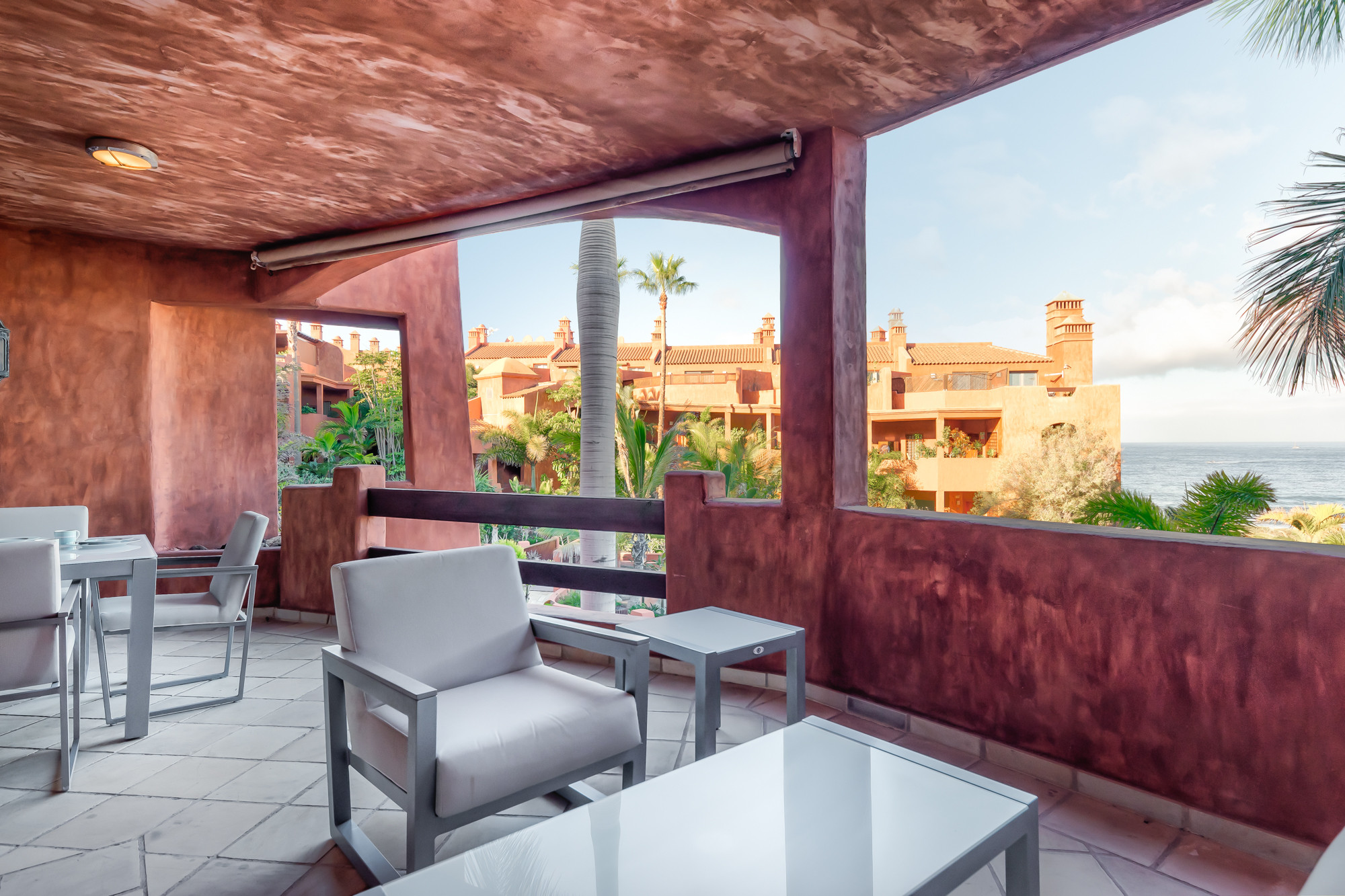 Este complejo de arquitectura contemporánea se caracteriza por sus hermosos jardines con palmeras exóticas, vegetación subtropical, piscina y amplias terrazas con impresionantes vistas al océano y a la vecina isla de La Gomera.